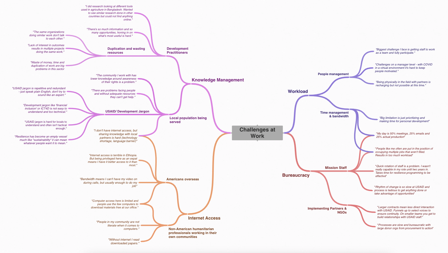 During several workshops with USAID, the team gathered information about USAID’s knowledge of the ResilienceLinks target audience, awareness of competitor websites, and mapping the stakeholder landscape.